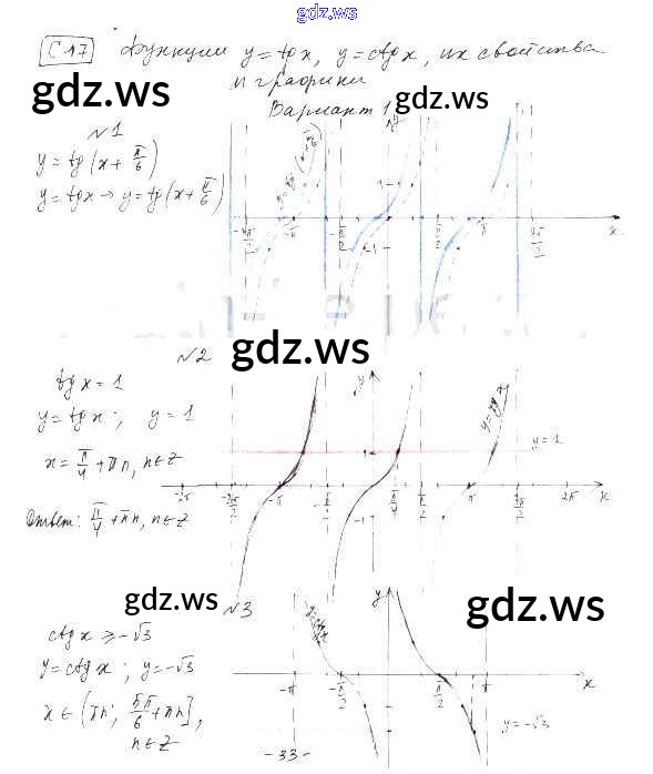 Готовый и полный ответ к СР-17. Функции y=tg, x y=ctg x, их свойства и графики Глава 2. Тригонометрические функции - Алгебре 10 класс Александрова Самостоятельные работы Базовый уровень ФГОС