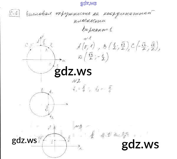 Готовый и полный ответ к СР-6. Числовая окружность на координатной плоскости Глава 2. Тригонометрические функции - Алгебре 10 класс Александрова Самостоятельные работы Базовый уровень ФГОС