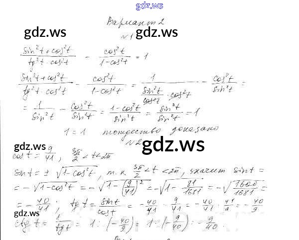 Готовый и полный ответ к СР-9. Тригонометрические функции числового аргумента Глава 2. Тригонометрические функции - Алгебре 10 класс Александрова Самостоятельные работы Базовый уровень ФГОС