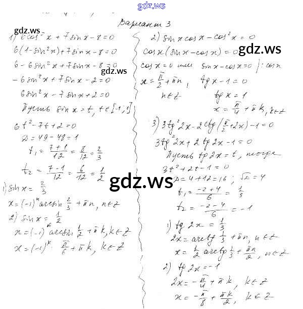 Готовый и полный ответ к СР-22. Тригонометрические уравнения Глава 3. Тригонометрические уравнения - Алгебре 10 класс Александрова Самостоятельные работы Базовый уровень ФГОС