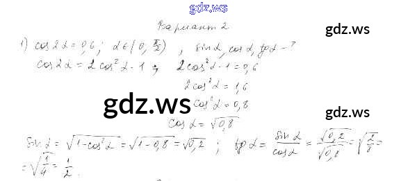 Готовый и полный ответ к СР-29. Формулы двойного аргумента Глава 4. Преобразование тригонометрических выражений - Алгебре 10 класс Александрова Самостоятельные работы Базовый уровень ФГОС
