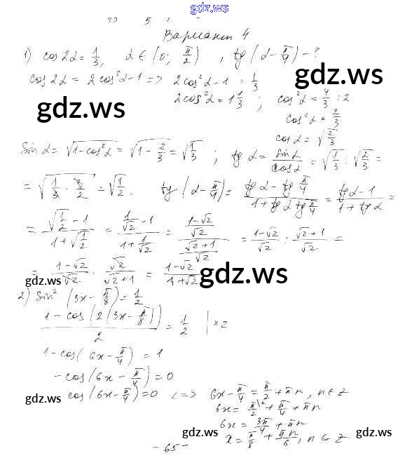 Готовый ответ СР-29. Формулы двойного аргумента Глава 4. Преобразование тригонометрических выражений - Алгебре 10 класс Александрова Самостоятельные работы Базовый уровень ФГОС