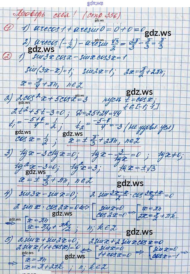 Готовый ответ Проверь себя - Алгебре 10 класс Колягин Учебник Базовый и углубленный уровень ФГОС