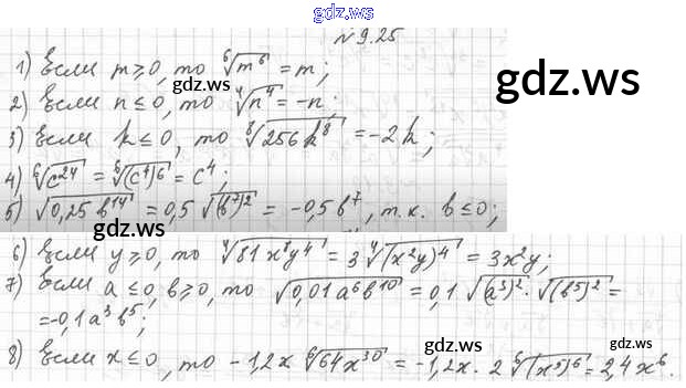 Готовый и полный ответ к §9. Свойства корня n-й степени - Алгебре 10 класс Мерзляк Учебник Базовый уровень Алгоритм успеха ФГОС