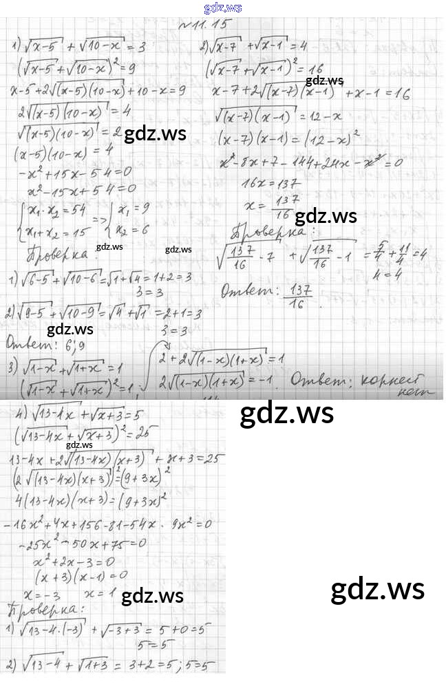 Готовый и полный ответ к §11. Иррациональные уравнения - Алгебре 10 класс Мерзляк Учебник Базовый уровень Алгоритм успеха ФГОС