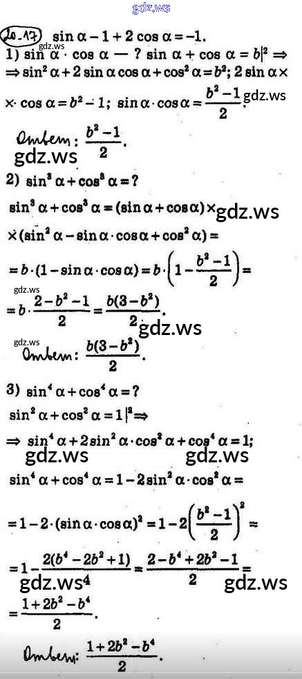 Готовый и полный ответ к §20. Основные соотношения между тригонометрическими функциями одного и того же аргумента - Алгебре 10 класс Мерзляк Учебник Базовый уровень Алгоритм успеха ФГОС