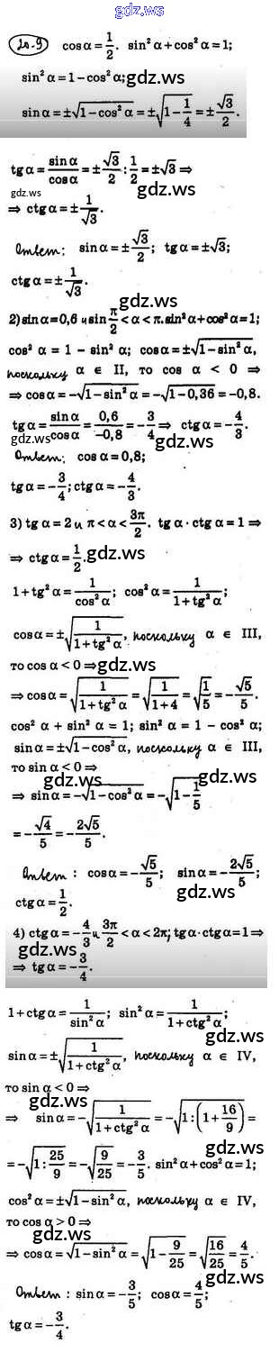 Готовый и полный ответ к §20. Основные соотношения между тригонометрическими функциями одного и того же аргумента - Алгебре 10 класс Мерзляк Учебник Базовый уровень Алгоритм успеха ФГОС