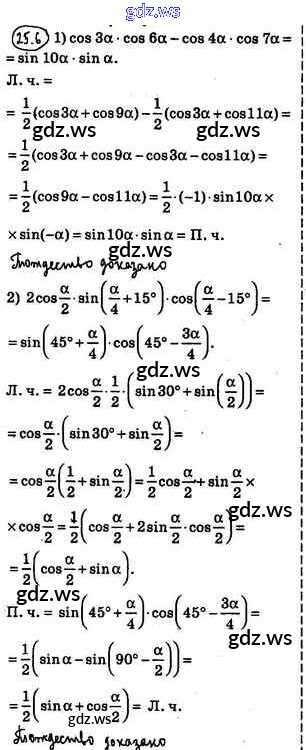 Готовый и полный ответ к §25. Формулы преобразования произведения тригонометрических функций в сумму - Алгебре 10 класс Мерзляк Учебник Базовый уровень Алгоритм успеха ФГОС