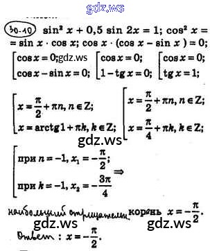Готовый и полный ответ к §30. Тригонометрические уравнения, сводящиеся к алгебраическим - Алгебре 10 класс Мерзляк Учебник Базовый уровень Алгоритм успеха ФГОС