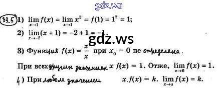 Готовый и полный ответ к §33. Представление о пределе функции в точке и о непрерывности функции в точке - Алгебре 10 класс Мерзляк Учебник Базовый уровень Алгоритм успеха ФГОС