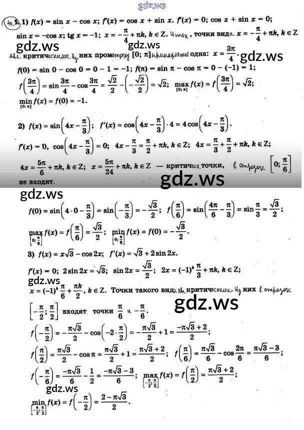 Готовый и полный ответ к §40. Применение производной при нахождении наибольшего и наименьшего значений функции - Алгебре 10 класс Мерзляк Учебник Базовый уровень Алгоритм успеха ФГОС