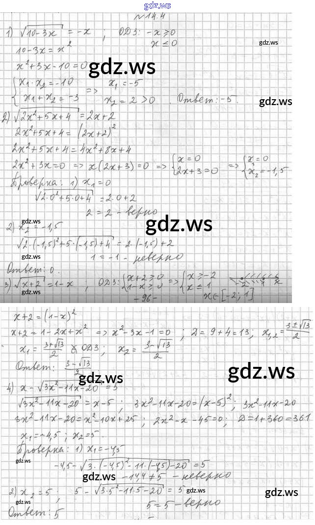 Готовый и полный ответ к §14. Иррациональные уравнения - Алгебре 10 класс Мерзляк Учебник Углубленный уровень Алгоритм успеха ФГОС