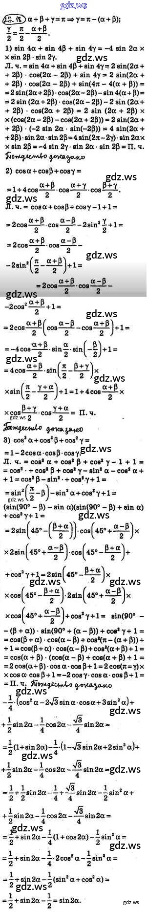 Готовый ответ §27. Формулы для преобразования суммы, разности и произведения тригонометрических функций - Алгебре 10 класс Мерзляк Учебник Углубленный уровень Алгоритм успеха ФГОС