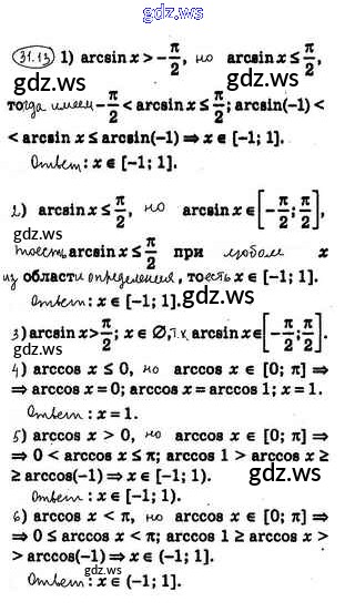 Готовый и полный ответ к §31. Функции у = arccosx, y = arcsinx, у = arctgx и у = arcctgx - Алгебре 10 класс Мерзляк Учебник Углубленный уровень Алгоритм успеха ФГОС
