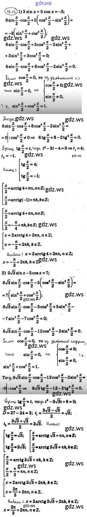 Готовый и полный ответ к §32. Тригонометрические уравнения, сводящиеся к алгебраическим - Алгебре 10 класс Мерзляк Учебник Углубленный уровень Алгоритм успеха ФГОС