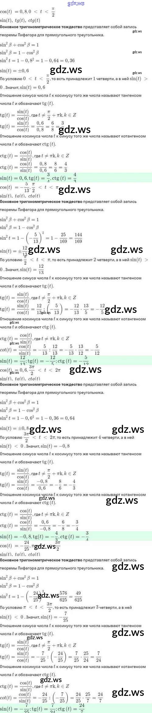 Готовый ответ §14. Тригонометрические функции числового аргумента - Алгебре 10 класс Мордкович Задачник Базовый и углубленный уровень ФГОС