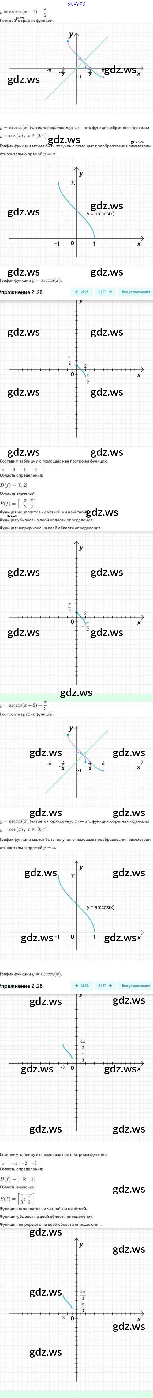 Готовый и полный ответ к §21. Обратные тригонометрические функции - Алгебре 10 класс Мордкович Задачник Базовый и углубленный уровень ФГОС