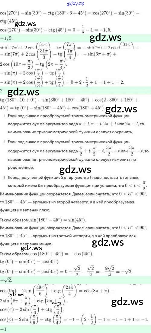 Готовый и полный ответ к §26. Формулы приведения - Алгебре 10 класс Мордкович Задачник Базовый и углубленный уровень ФГОС