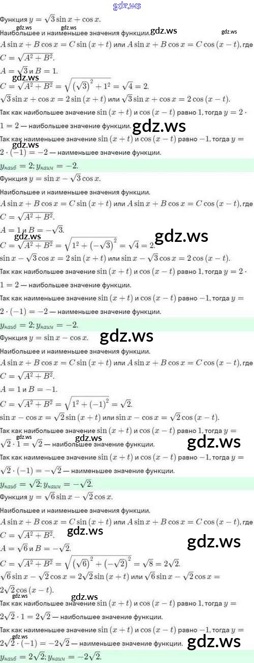 Готовый и полный ответ к §30. Преобразование выражения Asinx+Bcosx к виду Csin(x+t) - Алгебре 10 класс Мордкович Задачник Базовый и углубленный уровень ФГОС