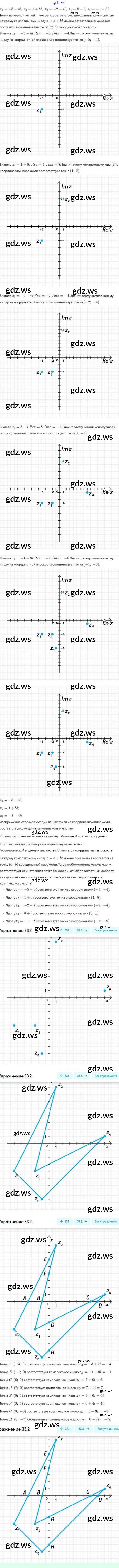 Готовый и полный ответ к §33. Комплексные числа и координатная плоскость - Алгебре 10 класс Мордкович Задачник Базовый и углубленный уровень ФГОС