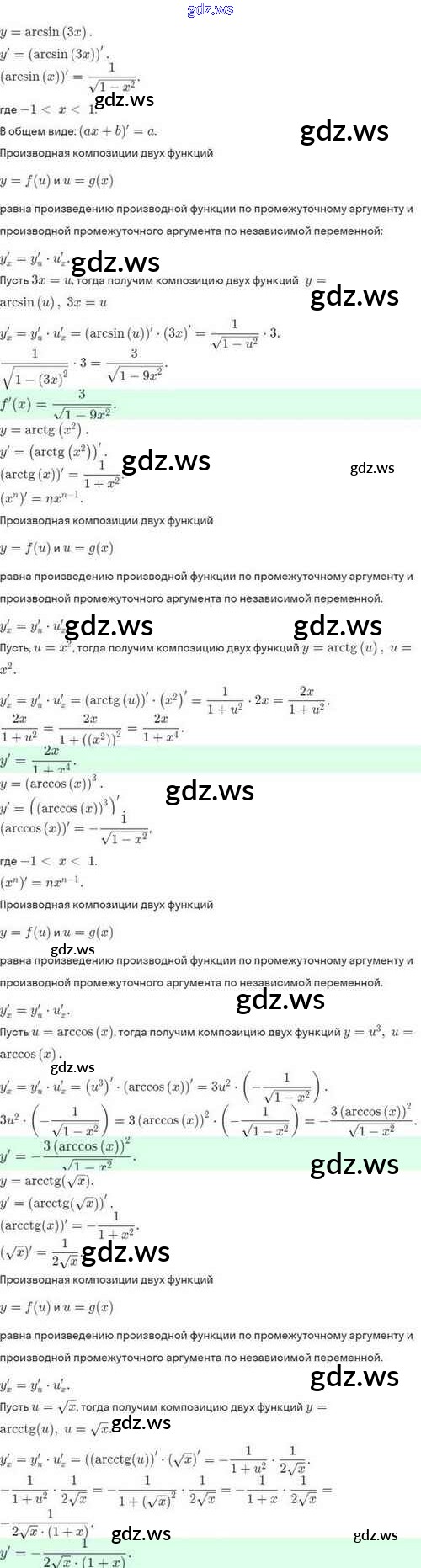 Готовый и полный ответ к §42. Дифференцирование сложной функции. Дифференцирование обратной функции - Алгебре 10 класс Мордкович Задачник Базовый и углубленный уровень ФГОС