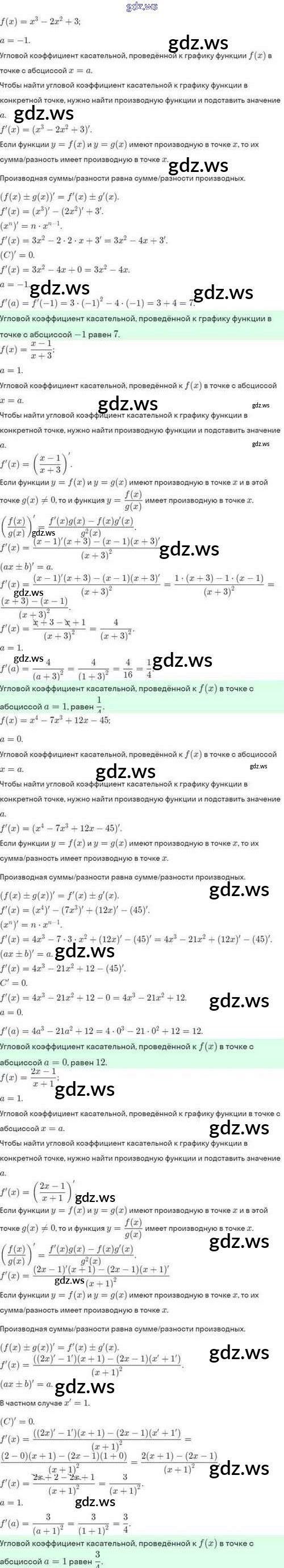Готовый и полный ответ к §43. Уравнение касательной к графику функции - Алгебре 10 класс Мордкович Задачник Базовый и углубленный уровень ФГОС