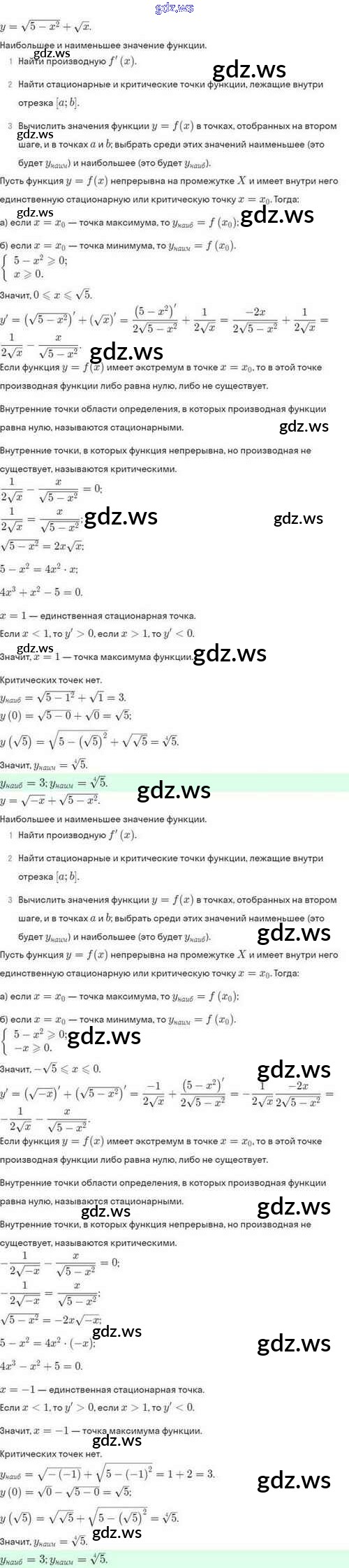Готовый и полный ответ к §46. Нахождение наибольших и наименьших значений функции - Алгебре 10 класс Мордкович Задачник Базовый и углубленный уровень ФГОС