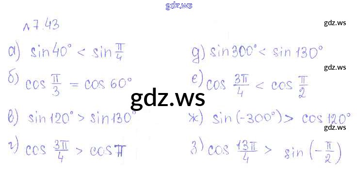 Готовый и полный ответ к §7. Синус и косинус угла Глава 2. Тригонометрические формулы. Тригонометрические функции - Алгебре 10 класс Никольский Учебник Базовый и углубленный уровень МГУ - школе ФГОС