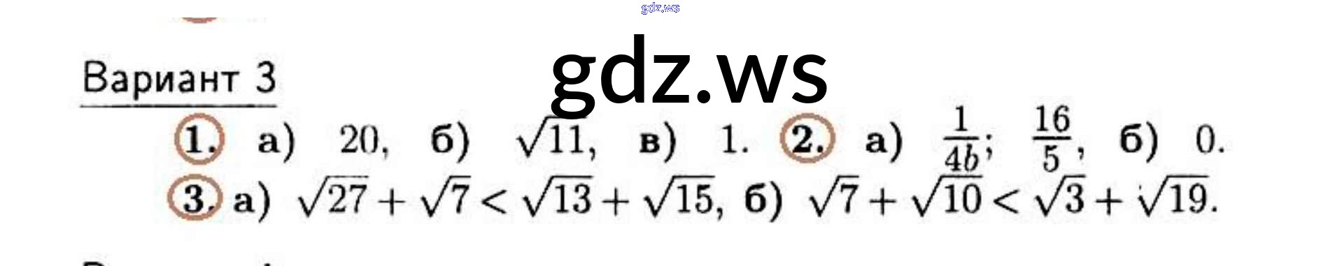 Готовый и полный ответ к Контрольная работа 1 (Варианты) - Алгебре 10 класс Зив Дидактические материалы