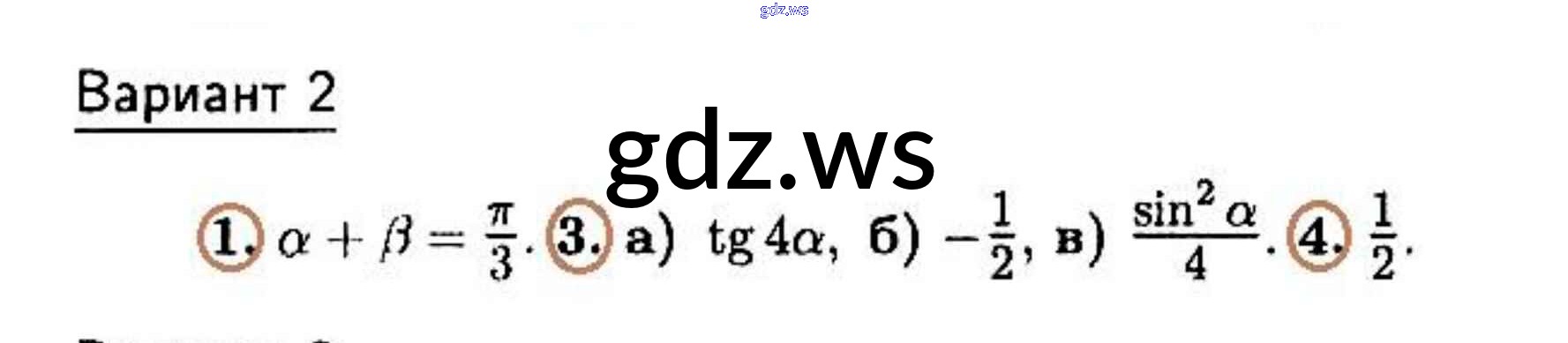 Готовый ответ Контрольная работа 5 (Варианты) - Алгебре 10 класс Зив Дидактические материалы