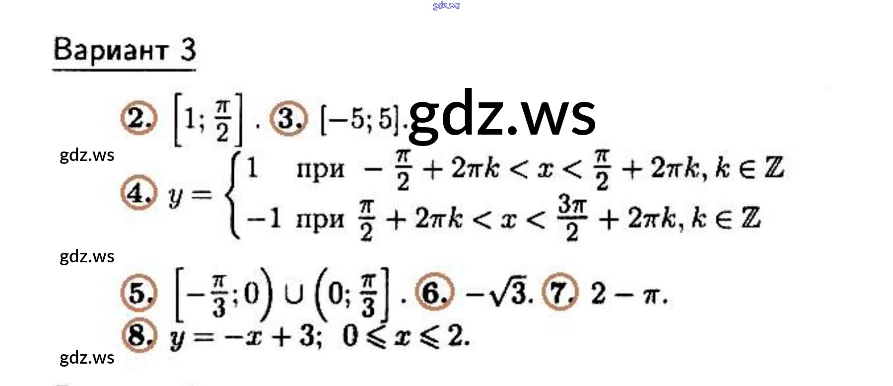 Готовый ответ Контрольная работа 7 (Варианты) - Алгебре 10 класс Зив Дидактические материалы