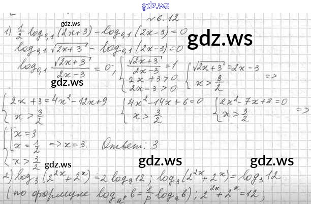 Готовый и полный ответ к §6. Логарифмические уравнения - Алгебре 11 класс Мерзляк Учебник Углубленный уровень Алгоритм успеха ФГОС