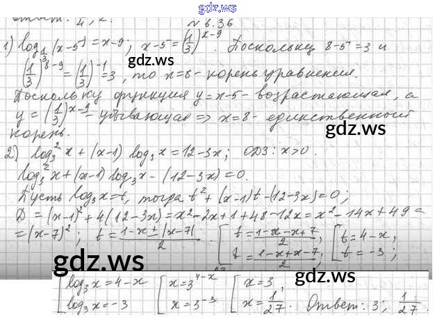 Готовый и полный ответ к §6. Логарифмические уравнения - Алгебре 11 класс Мерзляк Учебник Углубленный уровень Алгоритм успеха ФГОС