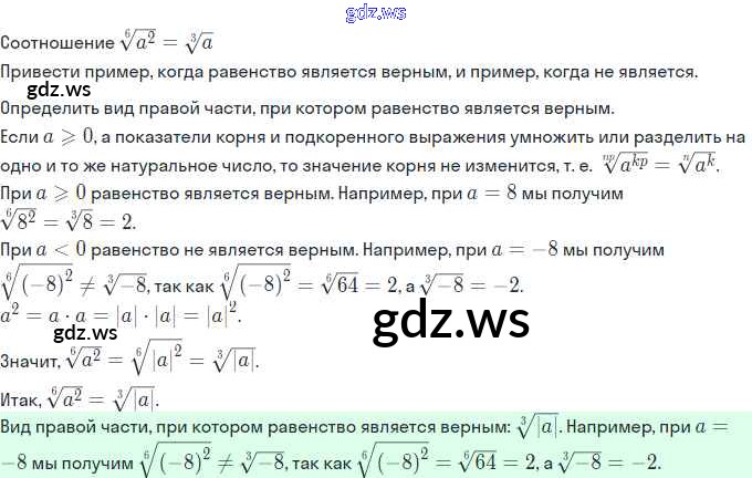 Готовый ответ §6. Свойства корня n-й степени  - Алгебре 11 класс Мордкович Учебник Базовый и углубленный уровень  ФГОС