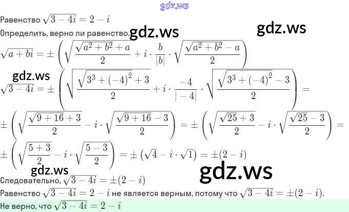Готовый и полный ответ к §10. Извлечение корней из комплексных чисел - Алгебре 11 класс Мордкович Учебник Базовый и углубленный уровень ФГОС