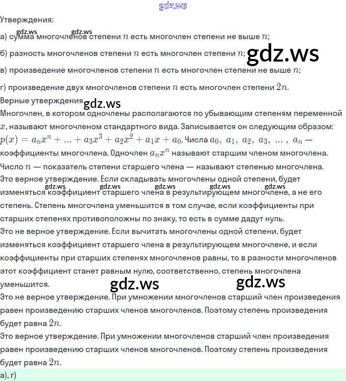 Готовый и полный ответ к §1. Многочлены от одной переменной - Алгебре 11 класс Мордкович Задачник Базовый и углубленный уровень ФГОС