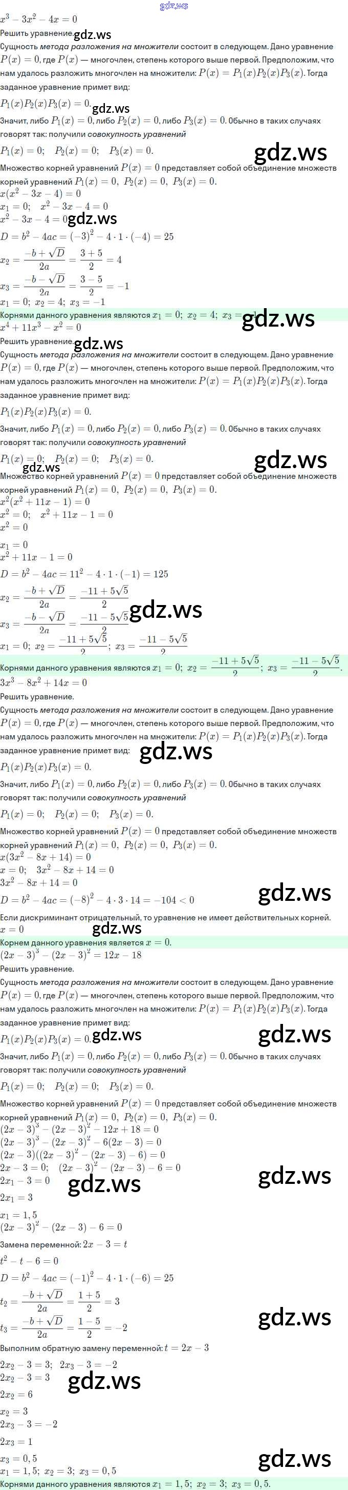 Готовый и полный ответ к §3. Уравнения высших степеней - Алгебре 11 класс Мордкович Задачник Базовый и углубленный уровень ФГОС