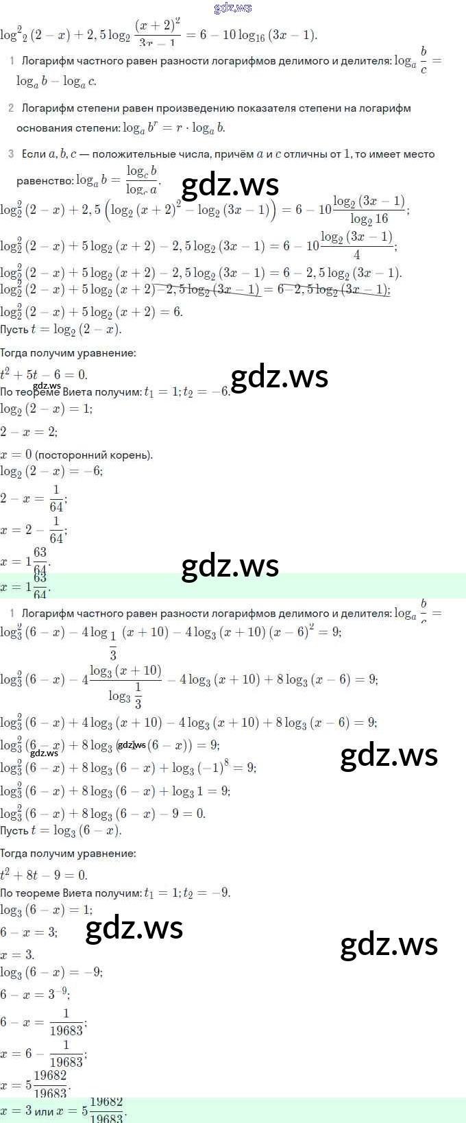 Готовый и полный ответ к §17. Логарифмические уравнения - Алгебре 11 класс Мордкович Задачник Базовый и углубленный уровень ФГОС