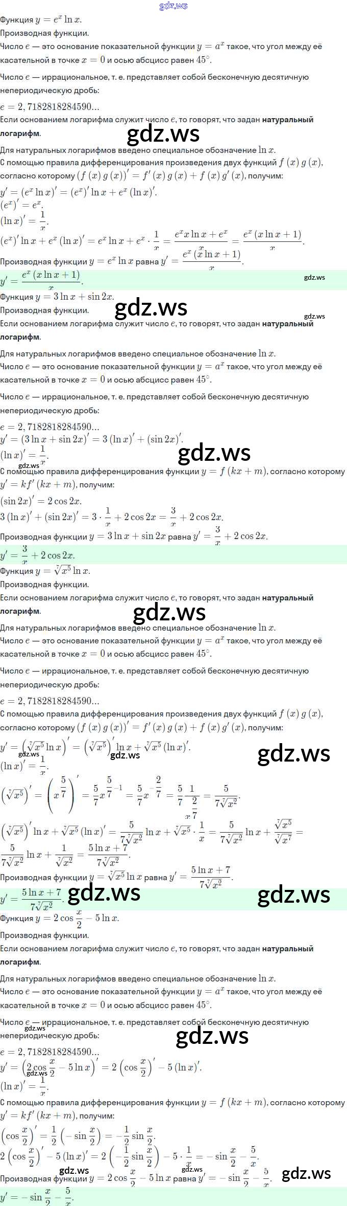 Готовый и полный ответ к §19. Дифференцирование показательной и логарифмической функций - Алгебре 11 класс Мордкович Задачник Базовый и углубленный уровень ФГОС