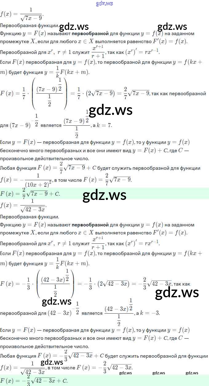 Готовый ответ §20. Первообразная и неопределённый интеграл - Алгебре 11 класс Мордкович Задачник Базовый и углубленный уровень ФГОС