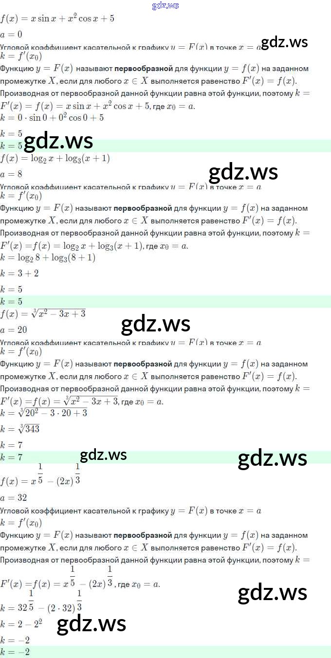 Готовый ответ §20. Первообразная и неопределённый интеграл - Алгебре 11 класс Мордкович Задачник Базовый и углубленный уровень ФГОС