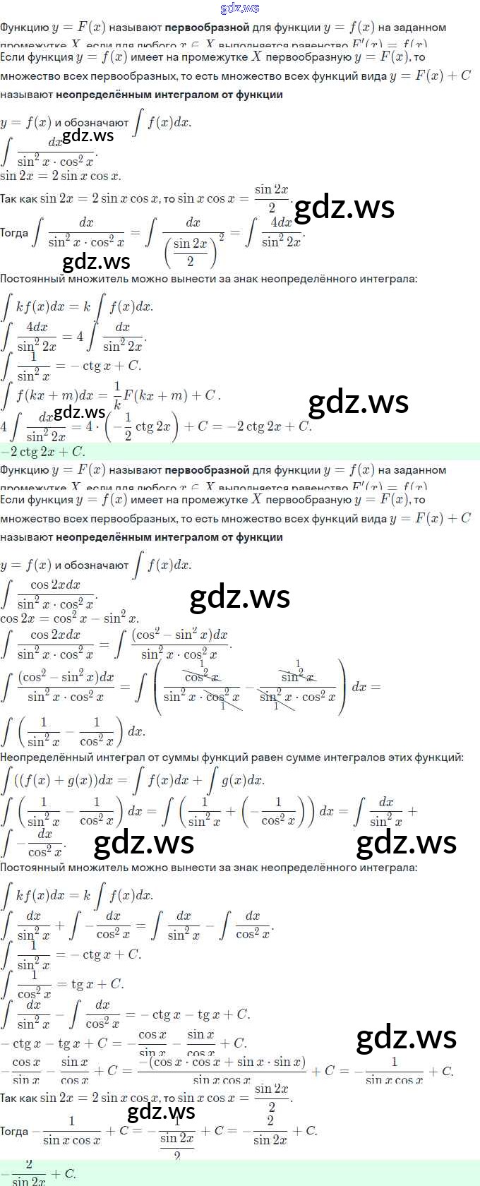 Готовый ответ §20. Первообразная и неопределённый интеграл - Алгебре 11 класс Мордкович Задачник Базовый и углубленный уровень ФГОС