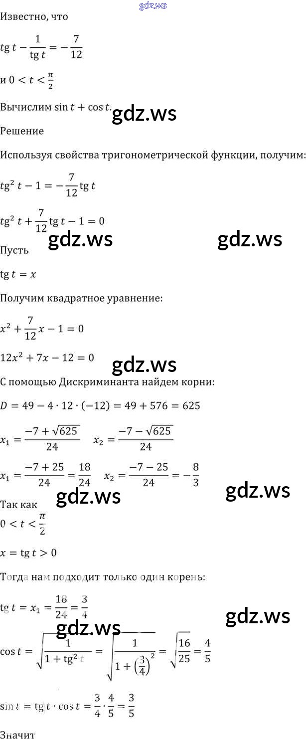 Готовый и полный ответ к §7. Тригонометрические функции числового аргумента Глава 2 - Алгебре 11 класс Мордкович Задачник Базовый уровень ФГОС