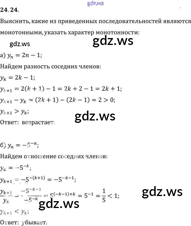 Готовый и полный ответ к §24. Предел последовательности Глава 5 - Алгебре 11 класс Мордкович Задачник Базовый уровень ФГОС