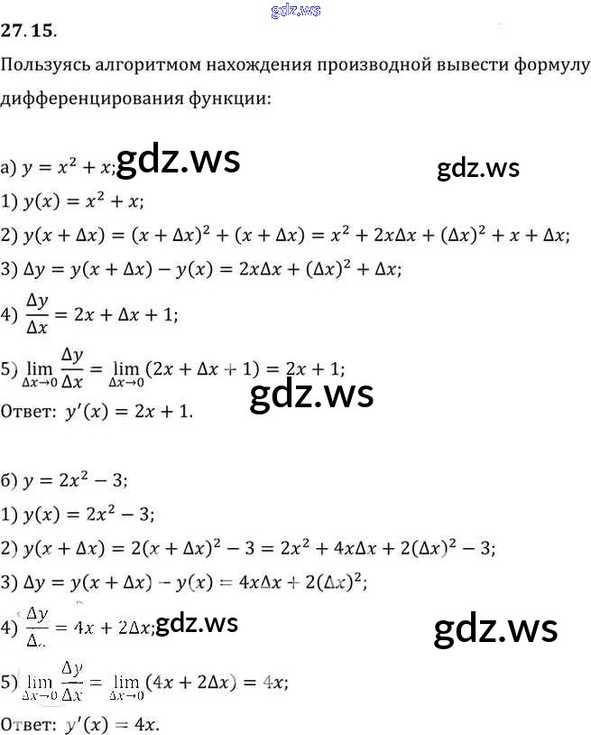 Готовый и полный ответ к §27. Определение производной Глава 5 - Алгебре 11 класс Мордкович Задачник Базовый уровень ФГОС