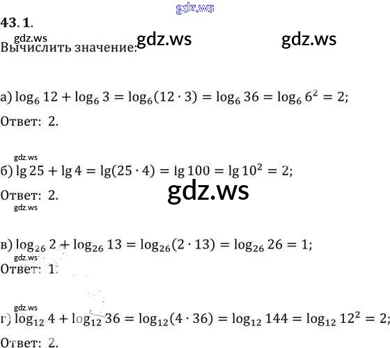Готовый и полный ответ к §43. Свойства логарифмов Глава 7 - Алгебре 11 класс Мордкович Задачник Базовый уровень ФГОС