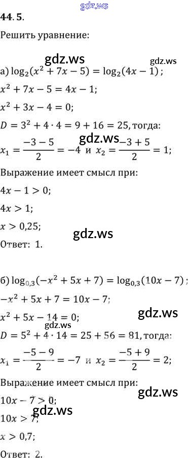 Готовый и полный ответ к §44. Логарифмические уравнения Глава 7 - Алгебре 11 класс Мордкович Задачник Базовый уровень ФГОС