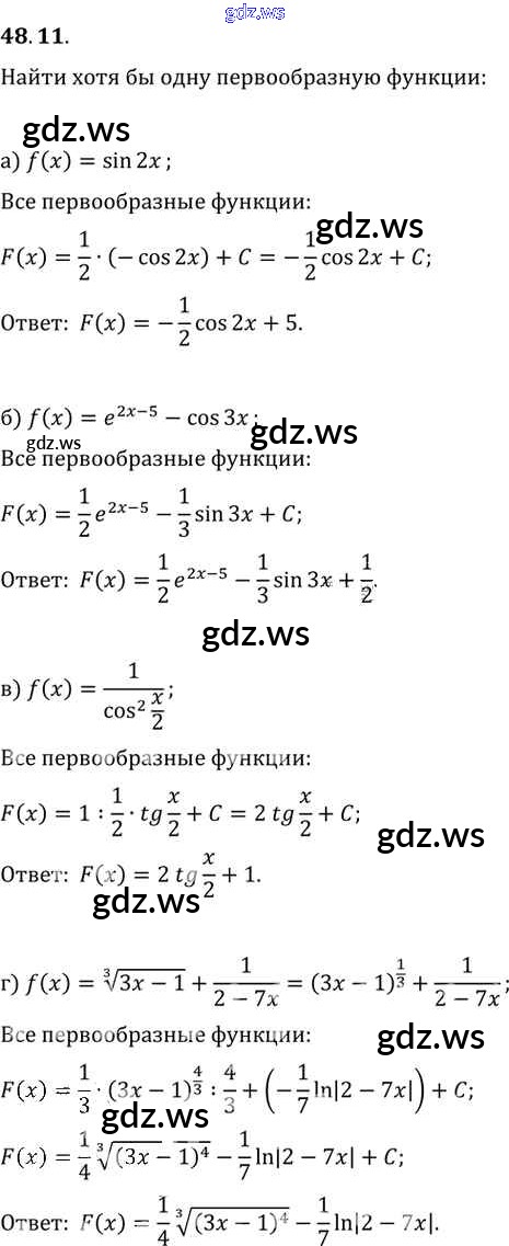 Готовый и полный ответ к §48. Первообразная Глава 8 - Алгебре 11 класс Мордкович Задачник Базовый уровень ФГОС