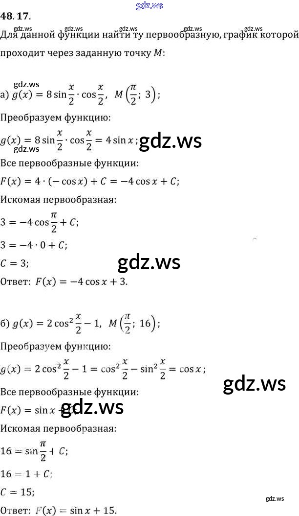Готовый и полный ответ к §48. Первообразная Глава 8 - Алгебре 11 класс Мордкович Задачник Базовый уровень ФГОС