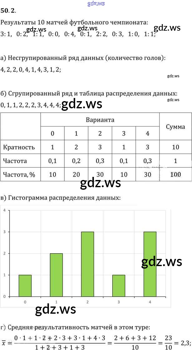 Готовый и полный ответ к §50. Статистическая обработка данных Глава 9 - Алгебре 11 класс Мордкович Задачник Базовый уровень ФГОС